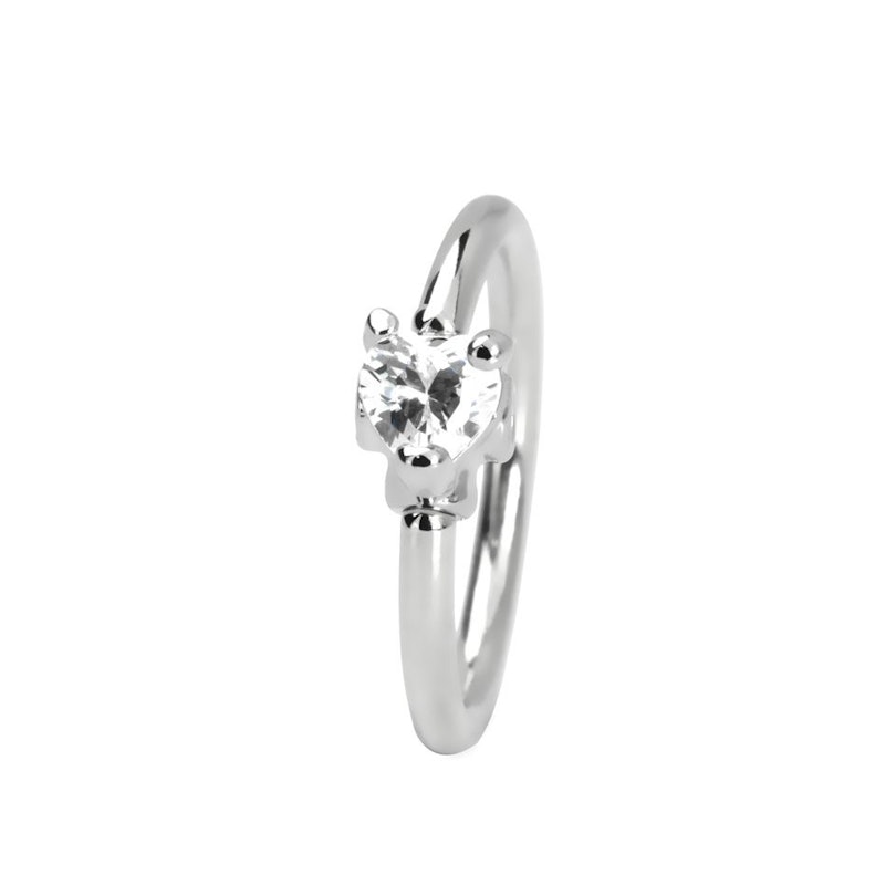 El aro está equipado con una cuenta en forma de corazón en lugar de una bola normal. Esta cuenta se sujeta por tensión cuando está en el aro, pero el corazón puede girar.