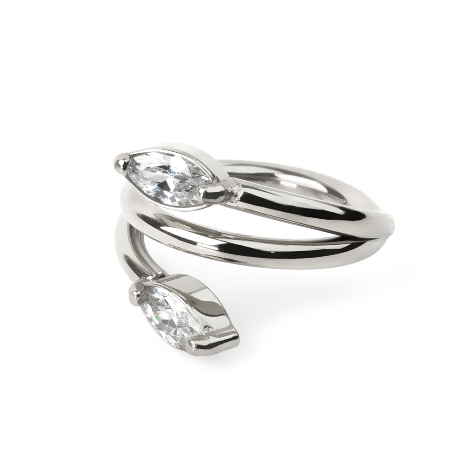 Aro clicker con efecto doble y piedras en corte marquise