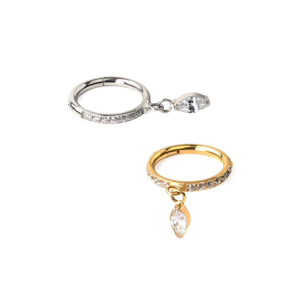 Nombre: Aro clicker de titanio con piedras frontales y colgante en corte marquise