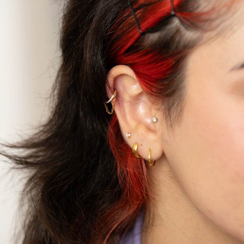 La joya está disponible en acabados oro y plateado, y en diámetros de 8 y 10 mm. Con ella, añadirás un toque de estilo a las constelaciones de tus orejas, sin importar dónde decidas llevarla.