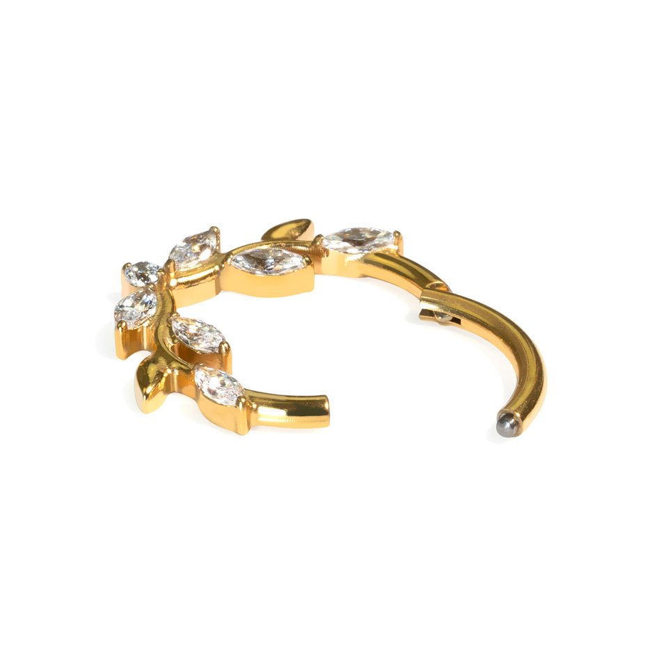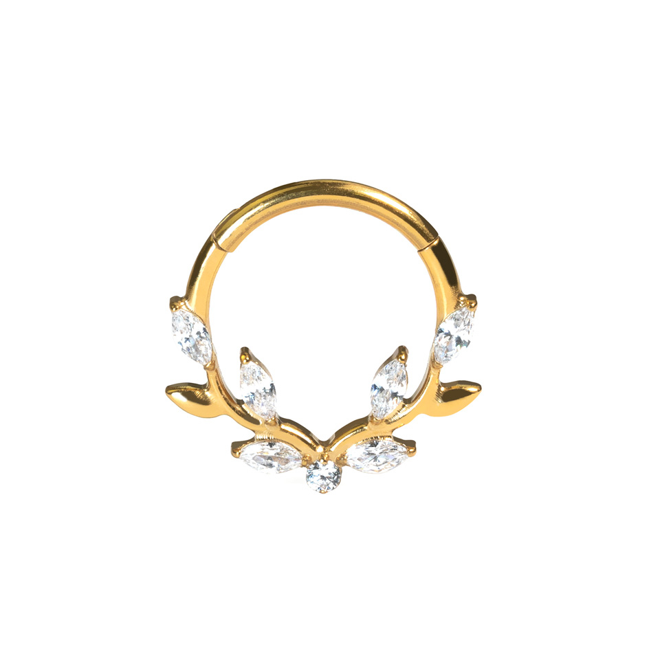 Nombre: Aro clicker frontal de titanio con hojas y piedras