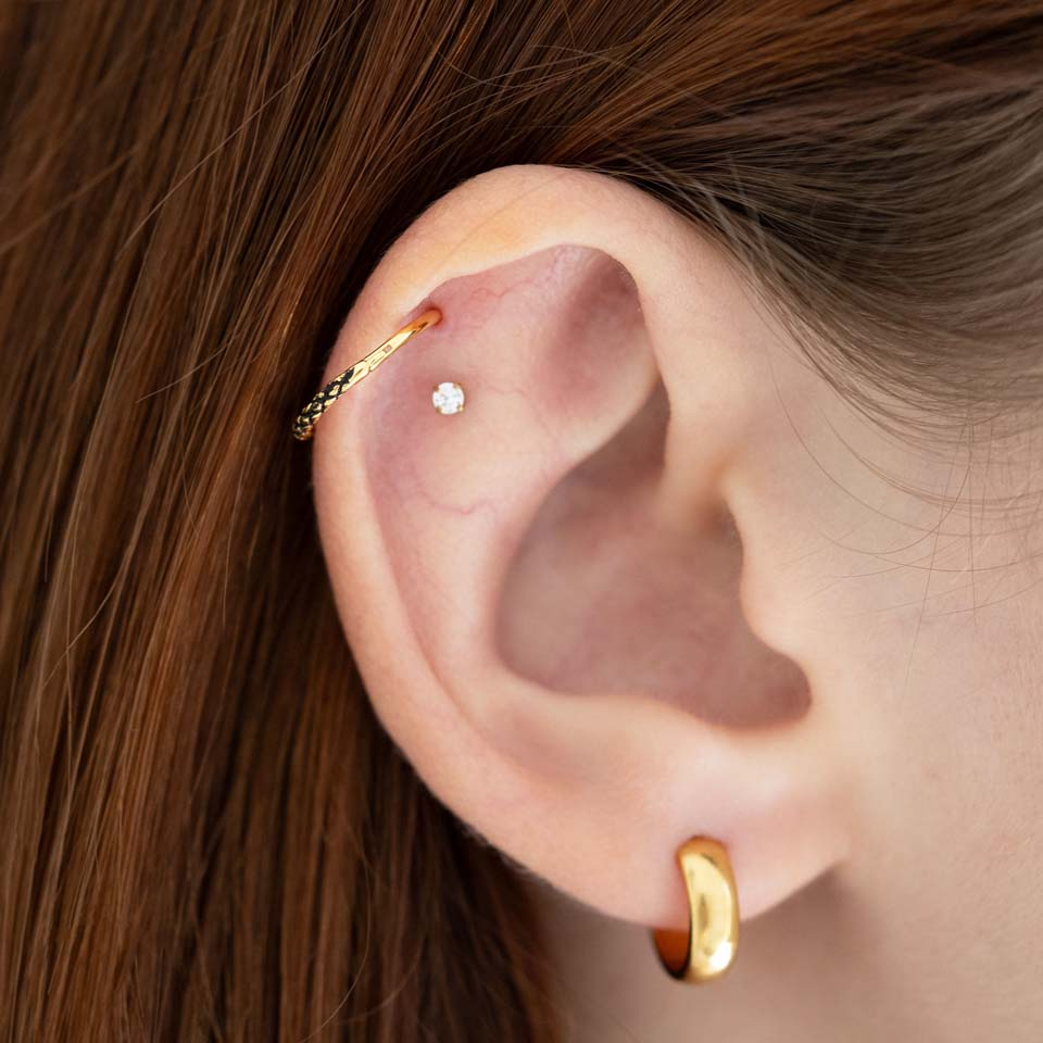 Esta joya puede lucirse en orejas, labios o septum, resultando un diseño de lo más versátil.