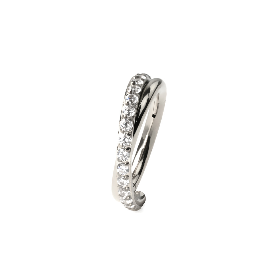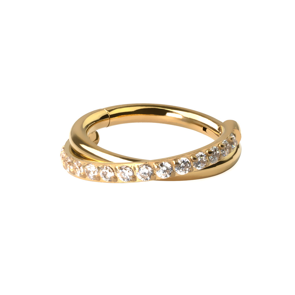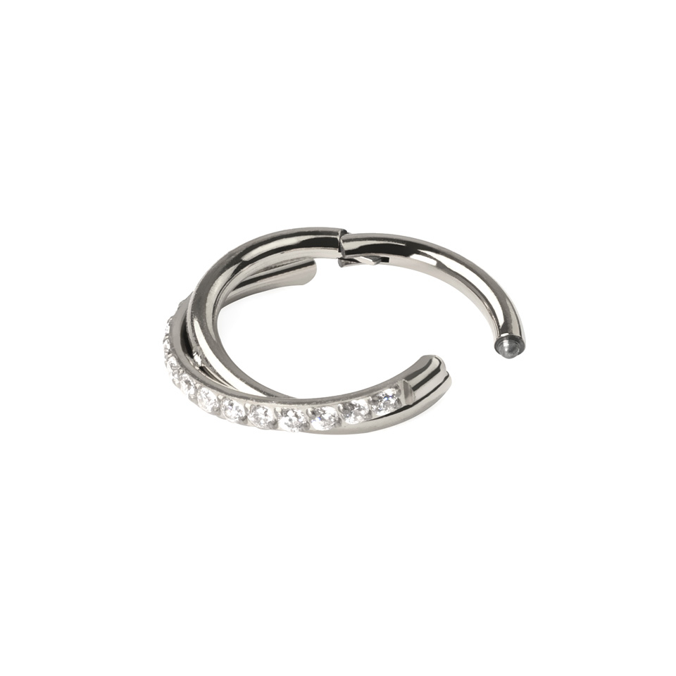 Este impresionante aro es tan bonito como práctico. El mecanismo de cierre consta de una bisagra, que hace que ponerse la joya sea fácil y rápido. Solo tendrás que tirar del segmento para abrirlo, introducir el aro en la perforación y presionar hasta que haga clic para cerrarlo. El aro tiene un diseño de aro cruzado que es perfecto para añadir un toque elegante a tu piercing en la oreja, sea en la hélice, daith, rook o incluso en los lóbulos.