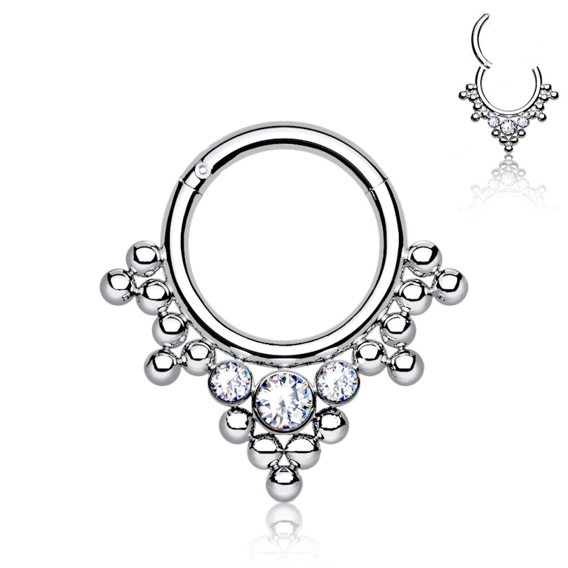 Aro con bisagra de titanio con bolitas y brillantes