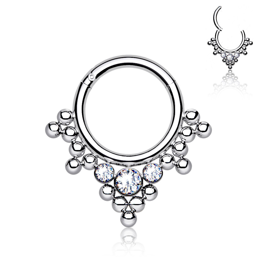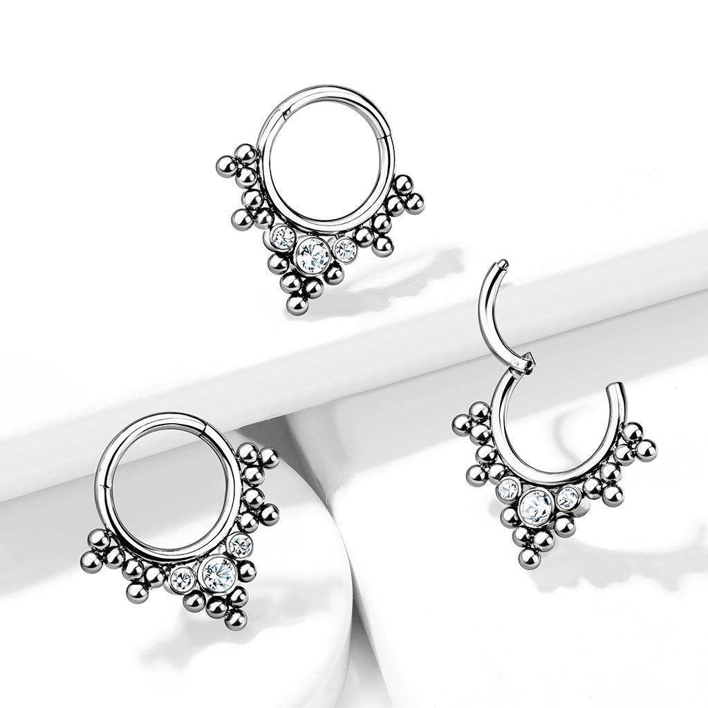 Nombre: Aro con bisagra de titanio con bolitas y brillantes