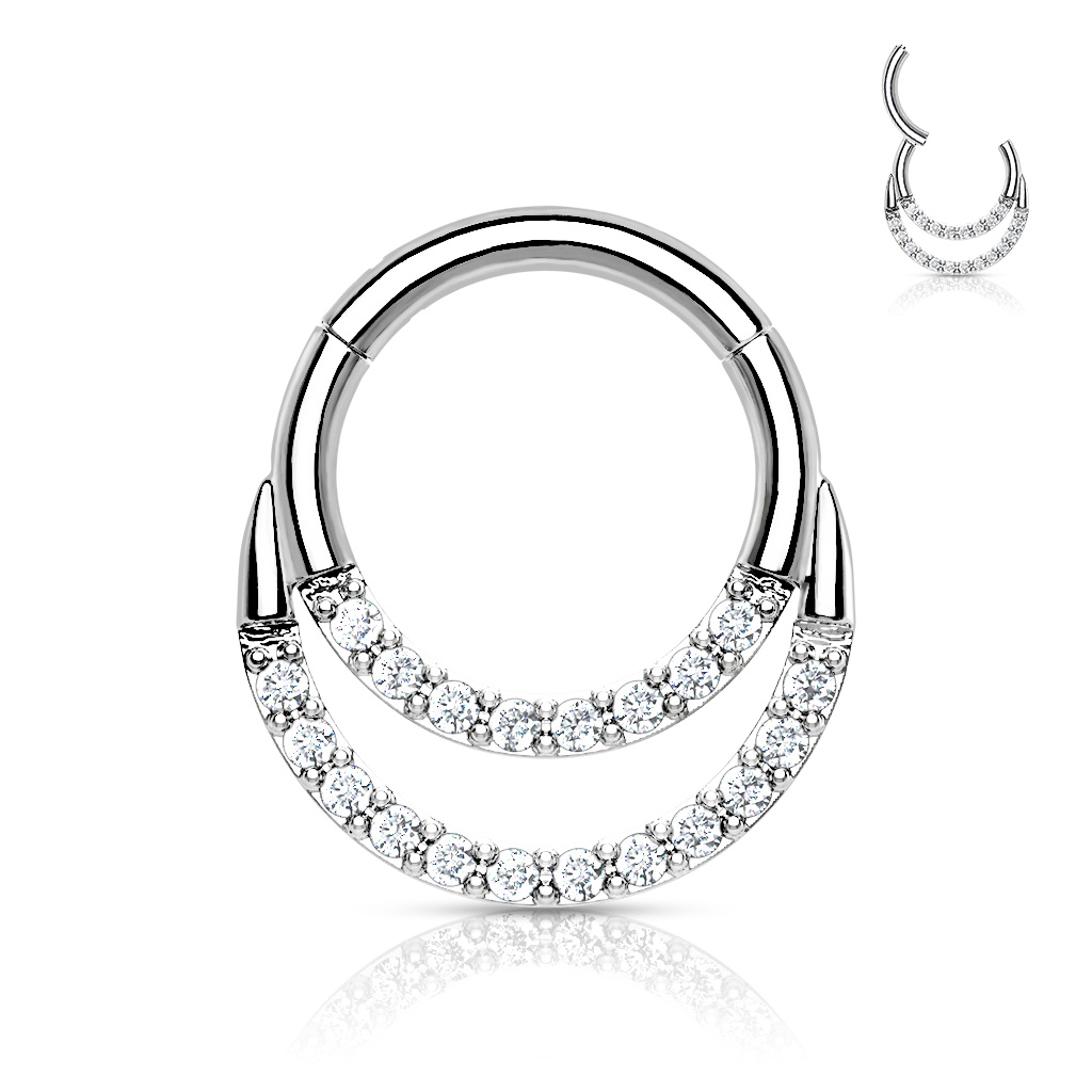 Nombre: Aro con bisagra de titanio con dos filas de brillantes