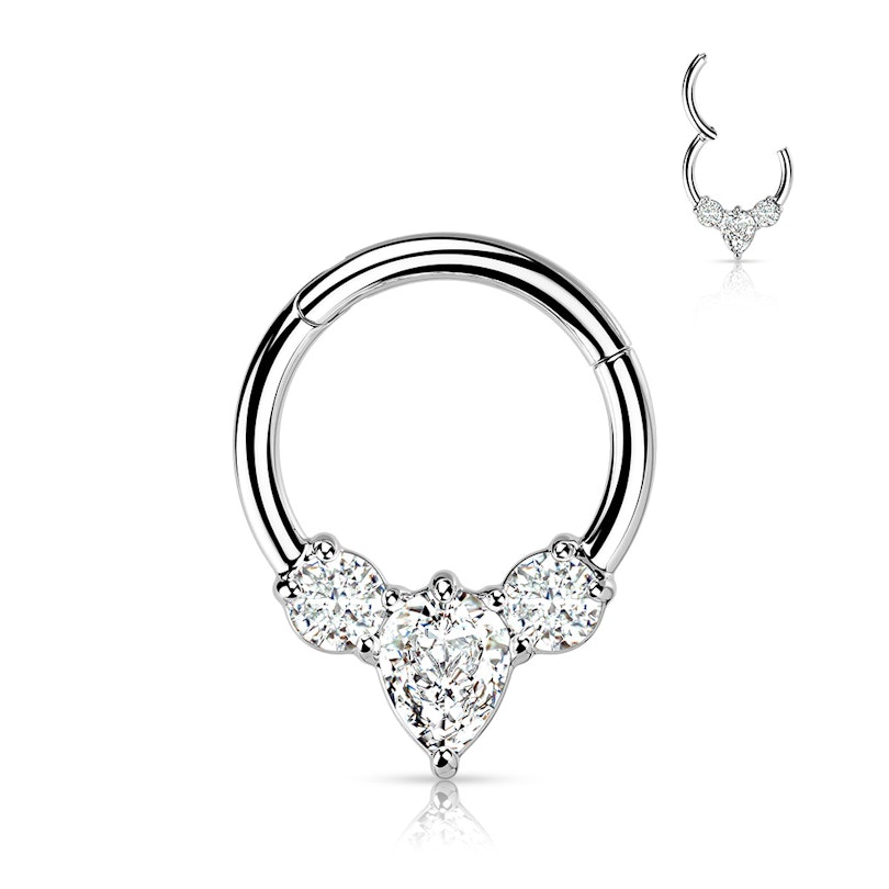 Aro con bisagra en acero quirúrgico con brillante en forma de pera