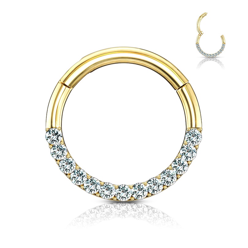Aro con bisagra en oro macizo de 14 quilates con semicírculo de circonitas