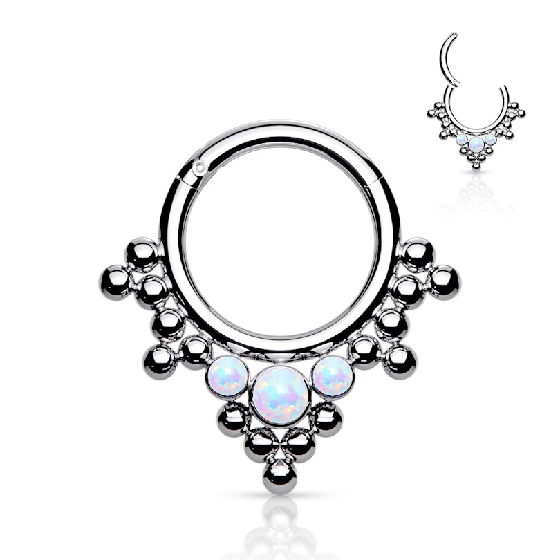 Nombre: Aro con bisagra en titanio con bolitas y ópalos