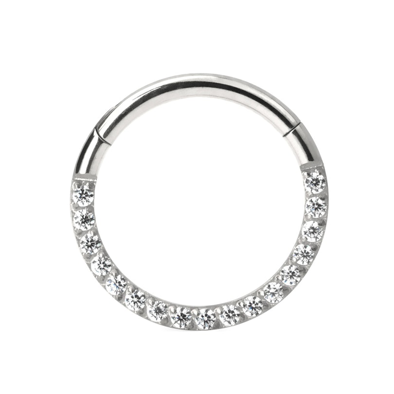 Nombre: Aro con bisagra en titanio con fila de brillantes
