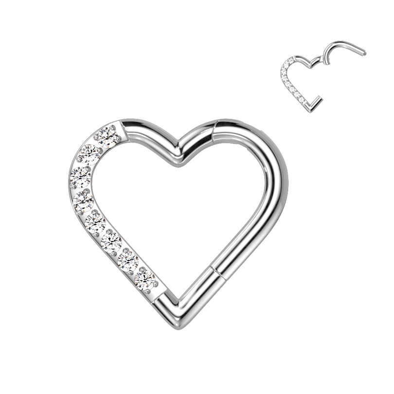Nombre: Aro con bisagra en titanio con forma de corazón empedrado