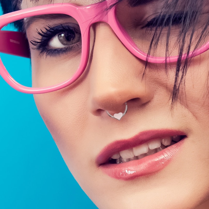 Pedí dos de estos, pensé que sería bonito que encajaran en la nariz, de lo contrario los pondría en el lóbulo de la oreja. Eran realmente demasiado grandes para la nariz. Sin embargo, pude ponerlos en el lóbulo de la oreja, después de haber estirado un poco los agujeros del lóbulo. Esta joya en forma de corazón es de un metal muy ligero. Se siente casi imperceptible y mi piel tolera bien los piercings, no han surgido reacciones alérgicas. Son bonitos, me gustan mucho. Un pequeño inconveniente es que el corazón se gira fácilmente de forma incorrecta, así que la punta afilada apunta hacia arriba. Y el punto de unión de los extremos del anillo es visible, hay un pequeño espacio, así que siempre tengo que ajustarlo para ocultarlo si se ha girado. Para mí, estos son, sin embargo, joyas que alegran el día.