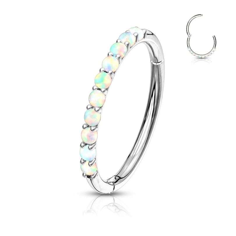 Nombre: Aro de oro de 14 quilates con bisagra y ópalos laterales