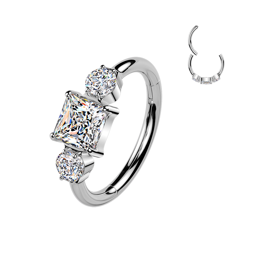 Nombre: Aro de titanio con bisagra y tres piedras de circonita