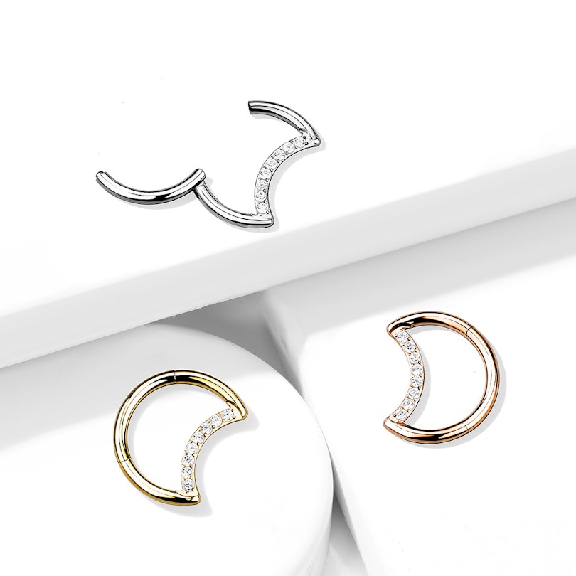 Aro de titanio en forma de medialuna con brillantes