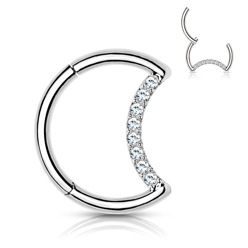 Aro de titanio en forma de medialuna con brillantes