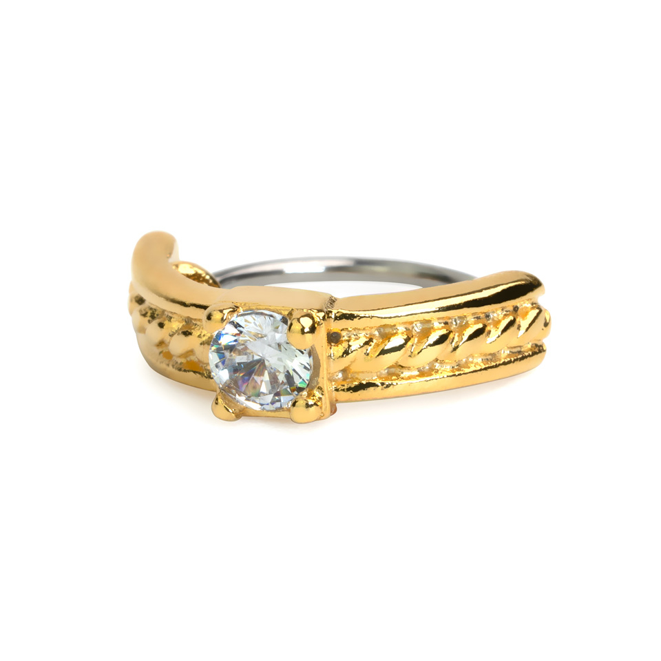 El lado del aro que está en contacto con la piel está hecho de acero quirúrgico, mientras que la parte decorativa es de latón. Para colocarlo, gíralo hacia delante o hacia atrás formando una “S”; una vez lo hayas pasado por el piercing, se cerrará por sí solo.
