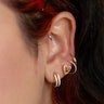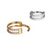 Este fabuloso aro doble está formado por dos semicírculos alineados con piedras circonitas transparentes. Si eres fan del brillo y el glam, ¿por qué no lucirlos por partida doble?
