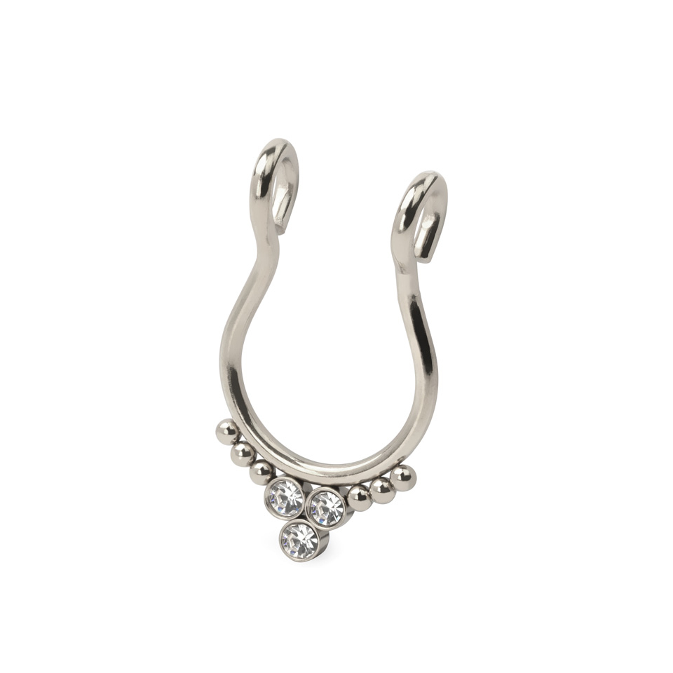 Aro falso para septum con tres brillantes y bolitas a cada lado