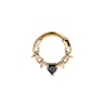 Este aro frontal luce un diseño de alambre de espino con una gema en el centro en forma de corazón. Gracias a su bisagra, se puede asegurar de manera sencilla en el piercing.