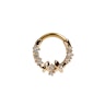 Este precioso aro frontal con mariposas luce dos mariposas rodeadas de pequeñas circonias cúbicas. Como es un aro con bisagra, es fácil de asegurarlo a tu piercing.