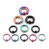 Esta joya está diseñada para los piercings desde los 2,0 mm hasta los 6,0 mm de grosor. Tiene forma de argolla y está hecha en acero quirúrgico, al que posteriormente se le ha aplicado un revestimiento de titanio anodizado que le da sus bonitos colores.