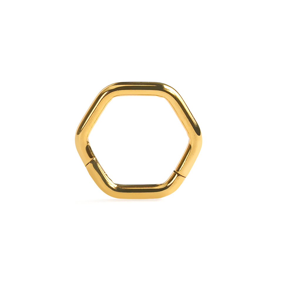 Este aro hexagonal de titanio con bisagra es la pieza más versátil del mundo. Puedes usarlo en diversas partes de la oreja, como helix, lóbulo y daith. También queda genial como nostril para la nariz. Como está hecho de titanio, es hipoalergénico y waterproof, y su diseño simple significa que es lo suficientemente cómodo para usarlo una y otra vez.