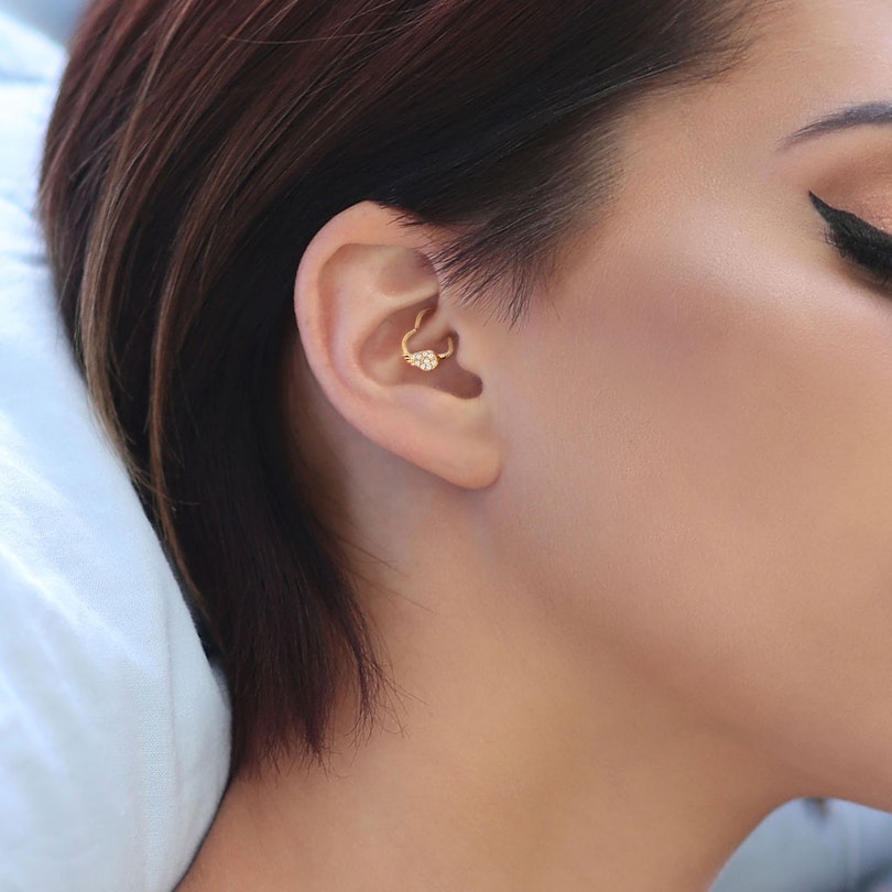 He probado diferentes tipos de joyería en mi daith, pero son difíciles de poner. Este se pone fácilmente y se ve hermoso, buena calidad y a buen precio. ¡ME ENCANTA!