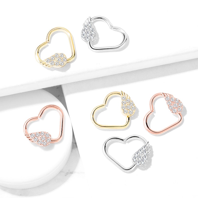 Nombre: Aro para la oreja con forma de corazón y ala de ángel