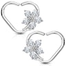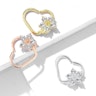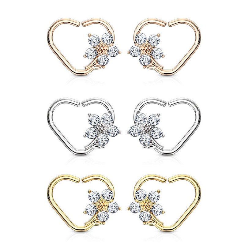 Aro para la oreja en forma de corazón con flor de piedras
