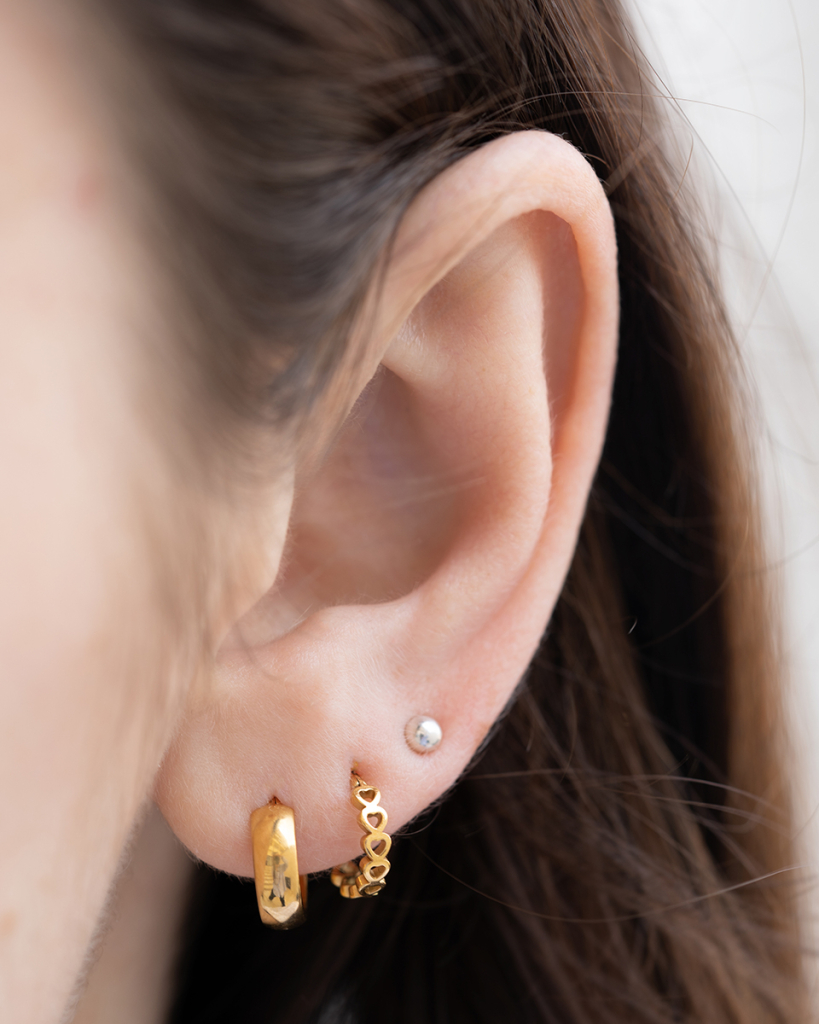 El aro está indicado para la mayoría de piercings de la oreja, como helix, tragus y rook, y también para los piercings en lóbulos.