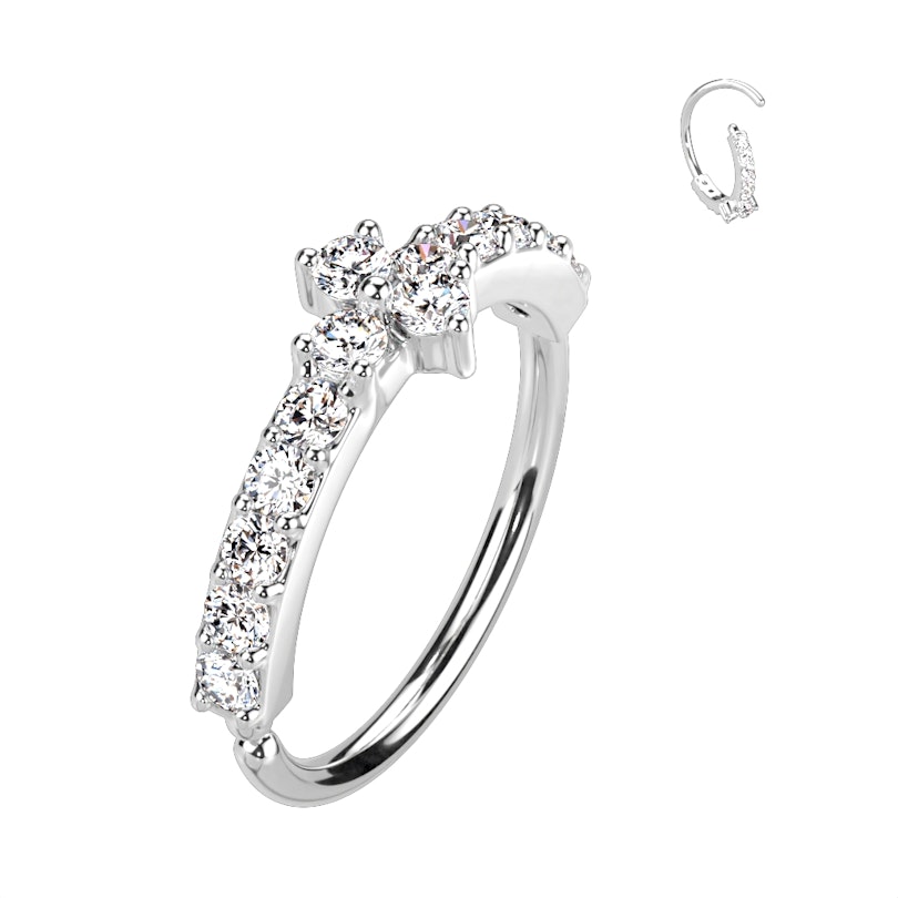 El aro flexible tiene un diámetro estándar de 8 mm y un grosor de barra de 0,8 mm, lo cual lo hace perfecto para piercings nostril. También es idóneo para la mayoría de piercings de las orejas, como joya intercambiable.