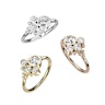 Este aro luce un atrevido, pero elegante diseño que rezuma estilo. Tres brillantes flanquean una piedra mayor formando un racimo de piedras circulares.
