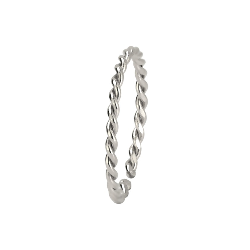 Esta es una versión un poco diferente de nuestro popular aro sin fin. El aro normal consiste en una pieza de metal, en que el extremo conecta con el aro. Esta nueva versión consiste en dos piezas metálicas que han sido onduladas y que juntas tienen un efecto trenzado. Los extremos del aro tienen una pequeña soldadura, para que, al colocar la joya en tu perforación, te sea fácil de cerrar, y además, para que las piezas no se separen.