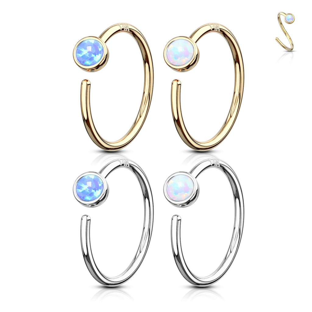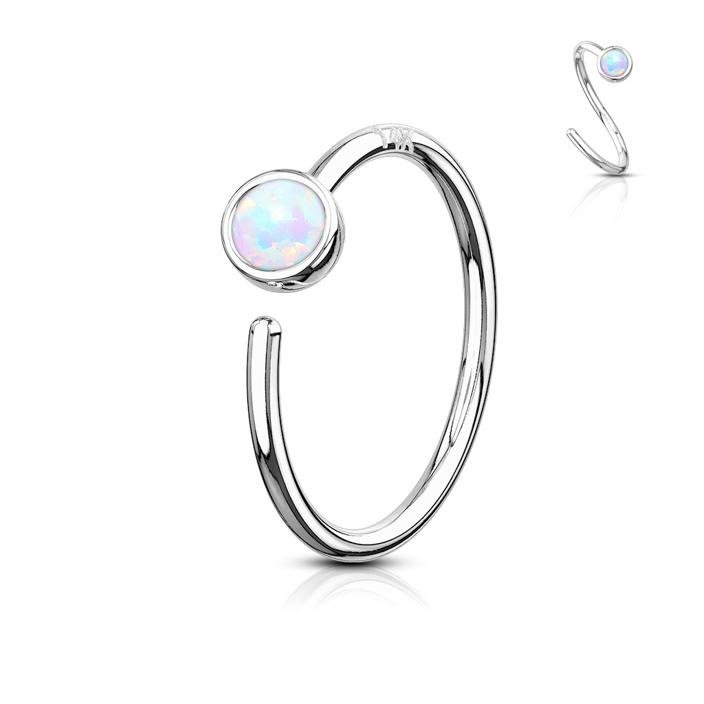 El aro está decorado con un pequeño ópalo de 2,5 mm. Se trata de un ópalo sintético.