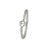 Un aro cautivo normal tiene una bola que se usa para cerrar el aro. La bola de cierre está sujeta a presión entre los extremos del aro. Pero este aro trenzado no tiene bola de cierre, ya que la bola está fija y solo sirve de decoración. La bola tiene un brillante incrustado que siempre está en la misma dirección porque la bola está fija. Esto significa que no podrás quitar la bola de la joya. Puedes abrir el aro girando los extremos como una espiral, tal y como puedes ver en la esquina superior derecha de la imagen. No tires de los extremos hacia fuera en forma de C, porque el aro se deformará. Por otro lado, no sujetes la bola cuando abras o cierres el aro, porque está soldada y se puede romper.