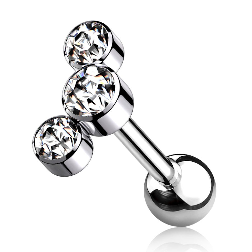 En la parte frontal hay tres pequeños brillantes. El brillante de en medio es ligeramente más grande que los otros dos, que son del mismo tamaño. El diseño de los brillantes le da a la joya un efecto precioso cuando está puesto. Elige entre varios modelos de brillantes de colores diferentes.