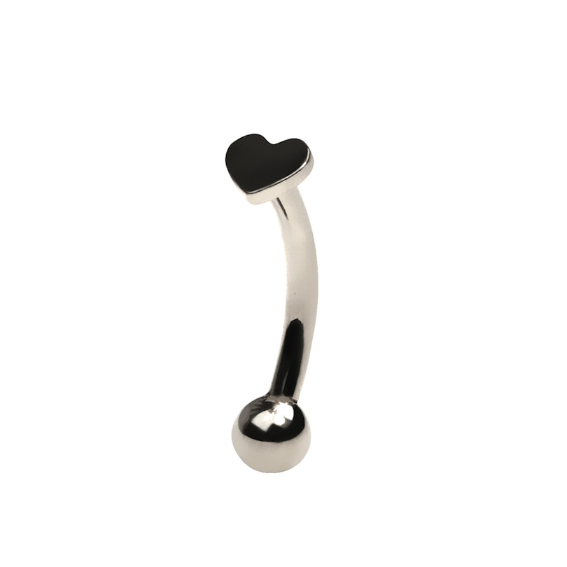 Esta barra curvada es perfecta para diferentes piercings en las cejas, orejas y labios. Incluye un bonito diseño de corazón en un extremo y una bola en el otro.