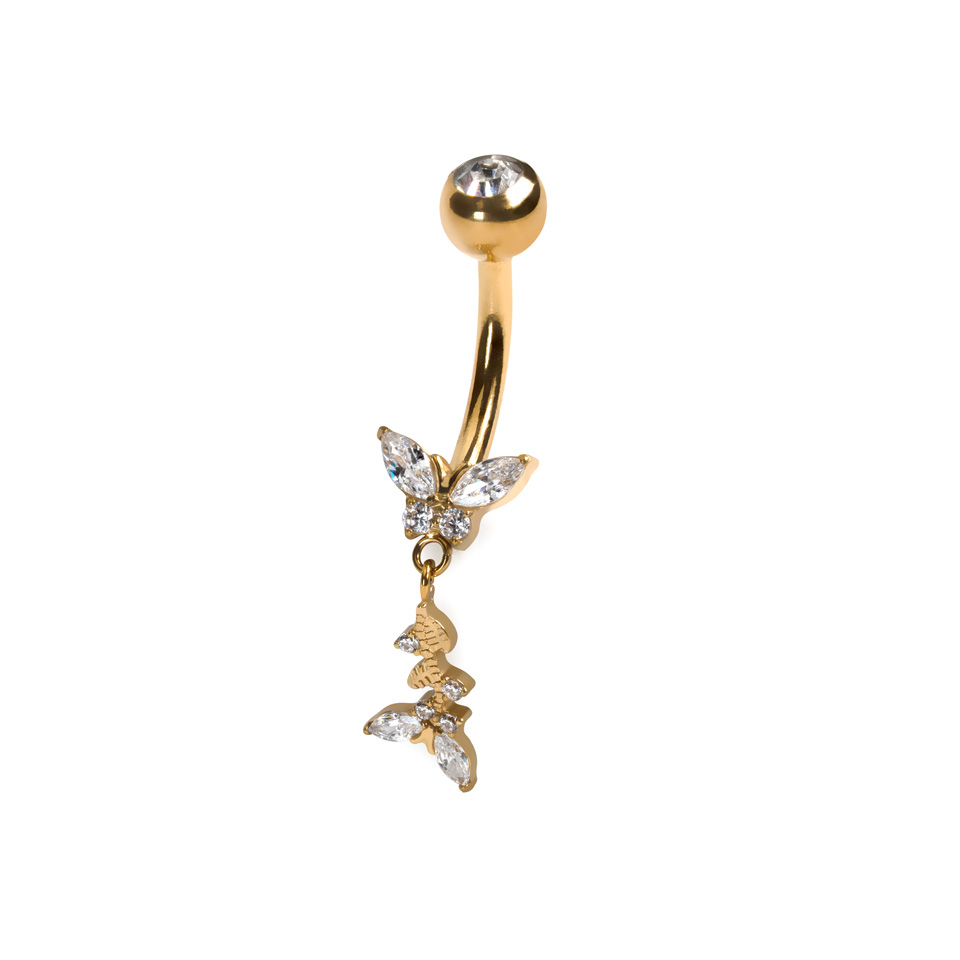 Barra de titanio para el ombligo con mariposas
