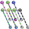 Este modelo está disponible en 7 combinaciones distintas, en que el color es lo único que las diferencia. A parte del color, son 100% idénticas, incluidas la longitud, el grosor de la barra y el tamaño de sus bolas. La barra está hecha en acero quirúrgico, al que se le han aplicado estos fantásticos colores. Quizás te estés preguntando como se han podido aplicar estos colores. Es muy fácil, simplremente se han cubierto las zonas en que la joya tiene su característico color metálico, y se han ionizado las partes descubiertas. Un truco inteligente y rápido que les da un acabado totalmente distinto.