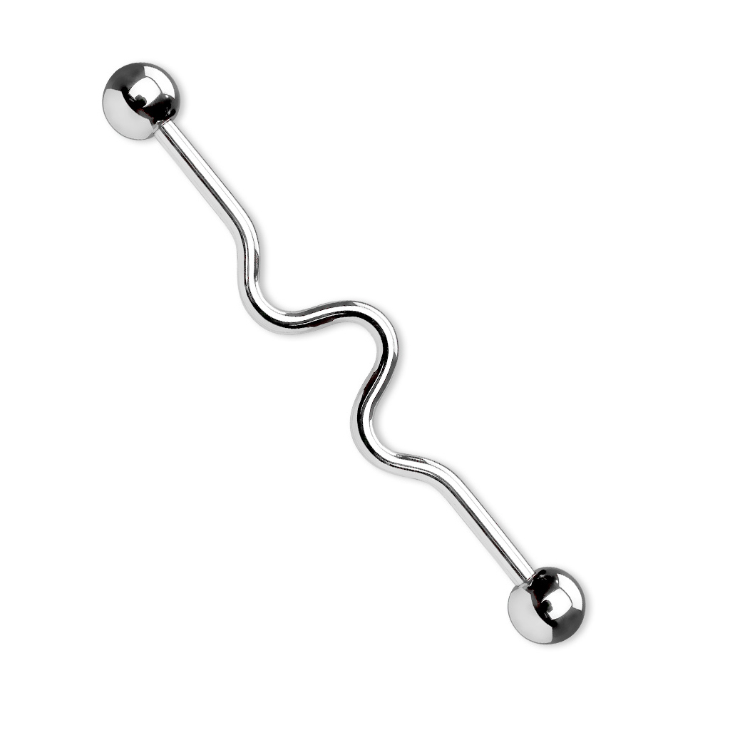 Magnífica barra industrial con dos ondulaciones en su centro, disponible en varios colores: todos ellos fabulosos. Esta barra industrial queda especialmente bonita cuando está colocada en la oreja. Para colocarla, tendrás que desenroscar las bolas en ambos extremos de la barra e insertarlos en ambas perforaciones. Una vez colocada solo tendrás que asegurarla enroscando las bolas otra vez.