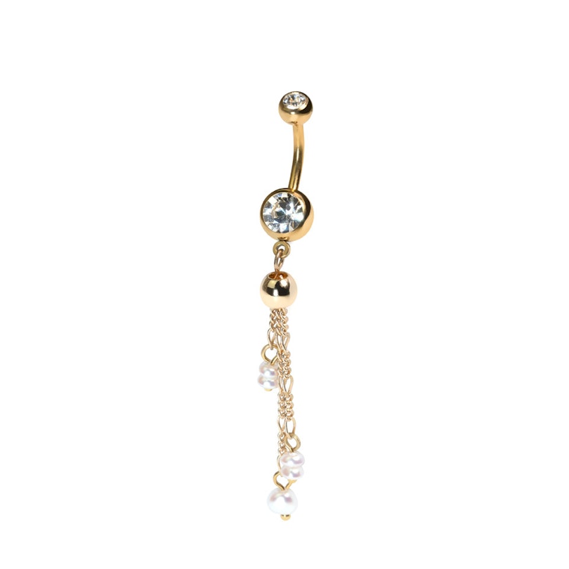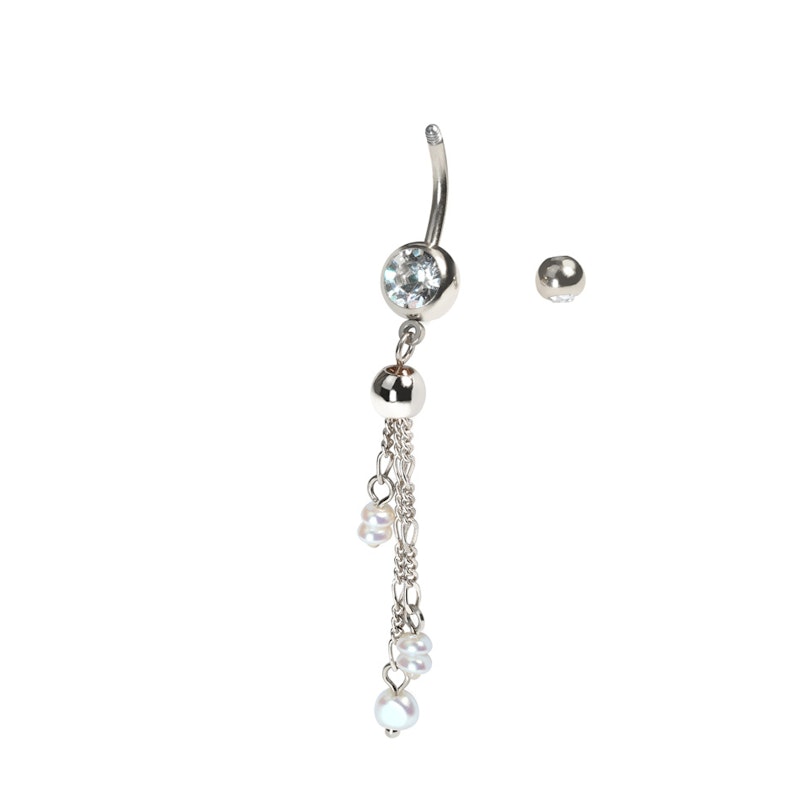 Nombre: Barra para el ombligo con cadenas y perlas
