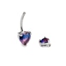 Esta barra para el ombligo con corazones bicolor rosa y morado tiene dos bonitos corazones que crean un efecto óptico que impresiona, pues parecen rosa y morado, dependiendo de la luz y el ángulo. Hay un corazón más pequeño en la parte superior, que mide 6 mm en la parte más ancha, y otro más grande en la parte inferior, que mide 7,5 mm.