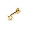 Esta barra de titanio para la lengua con estrella es hipoalergénica, ideal para pieles sensibles. Tiene rosca interna, lo que significa que se inserta el vástago liso a través del piercing y se enrosca.