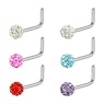 Si te encanta todo lo que brilla, seguro que te enamorarás de esta preciosa joya para piercings en la nariz. Consiste en una barra en forma de L que se dobla en un ángulo de 90°, con una bola en el extremo. La barra, que se introduce en el nostril, mide 6 mm desde la bola hasta el ángulo.