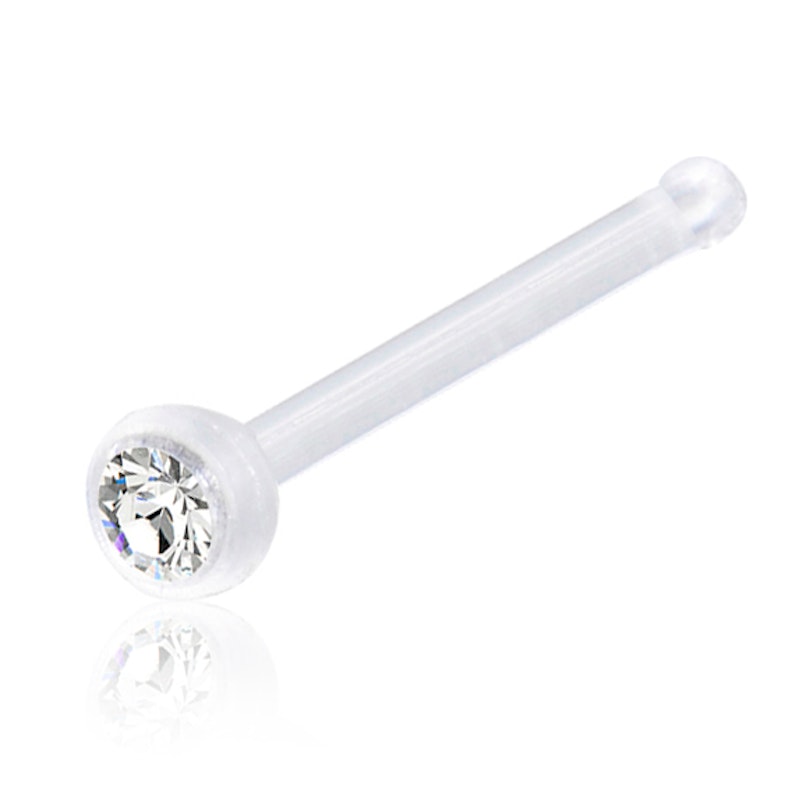 Una joya en la nariz puede ser muy pequeña y casi invisible, pero aun así todavía se tiene que poder apreciar, ya que si no no tendría sentido llevar un piercing en esta perforación. Una manera de conseguirlo es con esta joya hecha de acrílico en color claro, que además lleva un brillante. Esta puede ser una opción perfecta para ti, si quieres una joya pequeña y discreta. Además, el acrílico es un material más flexible que otros, como el acero quirúrgico, así que te parecerá incluso que no llevas ninguna joya. De hecho la joya solo pesa 0,01 gramos, por lo que por el peso seguro que tampoco lo notarás.