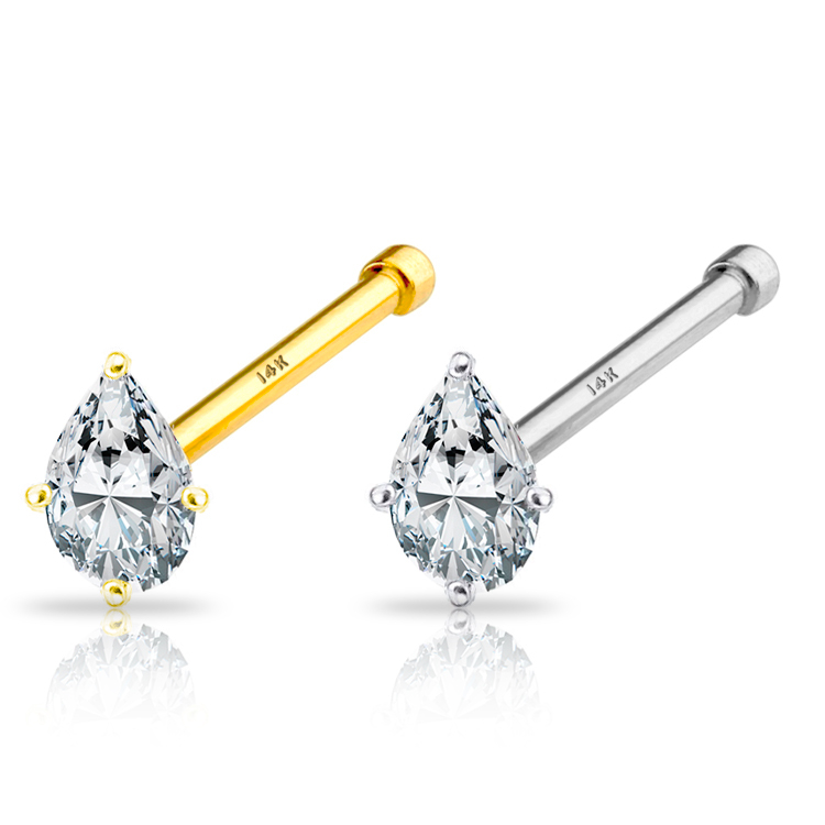 Nombre: Barra para la nariz en oro de 14 quilates con circonita en forma de gota