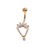 Barra para ombligo de titanio con piedras corte marquesa y cadena colgante
