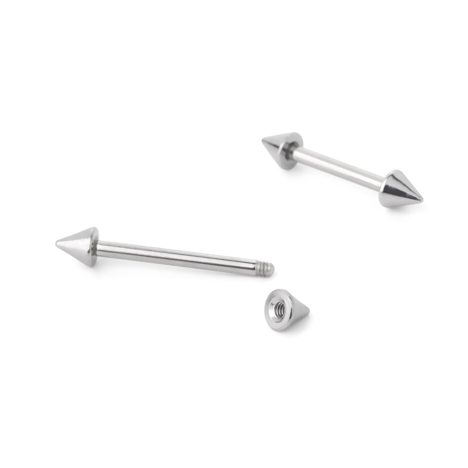 Puedes llevar esta fabulosa barra con pinchos en muchos tipos de perforaciones diferentes. Por ejemplo, puede quedar muy sexy en el piercing en el pezón o en muchos piercings íntimos. Este modelo está disponible en varios grosores de barra y longitudes, y además, también podrás elegir el tamaño que quieras para los pinchos.