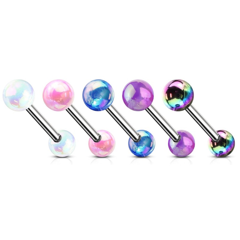 Las brillantes bolas roscadas crean un gran atractivo visual con sus tonos eléctricos. Estas bolas han sido recubiertas con una capa especial para obtener los colores metálicos en los que están disponibles. Las bolas tienen 6 mm de diámetro, por lo que son lo suficientemente grandes como para llamar la atención.